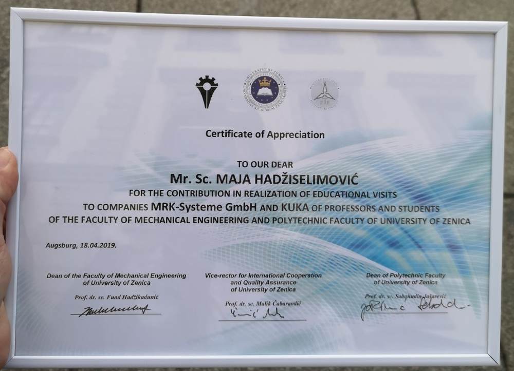 Univerzitet u Zenici je prvi iz BiH koji dolazi u centralu firme KUKA, tako da ova edukativna ekskurzija i s tog aspekta ima poseban značaj, te je druga veća stručno-edukativna grupa, nakon prošlogodišnje edukativne ekskurzije organizovane povodom Evropske sedmice robotike u BiH.