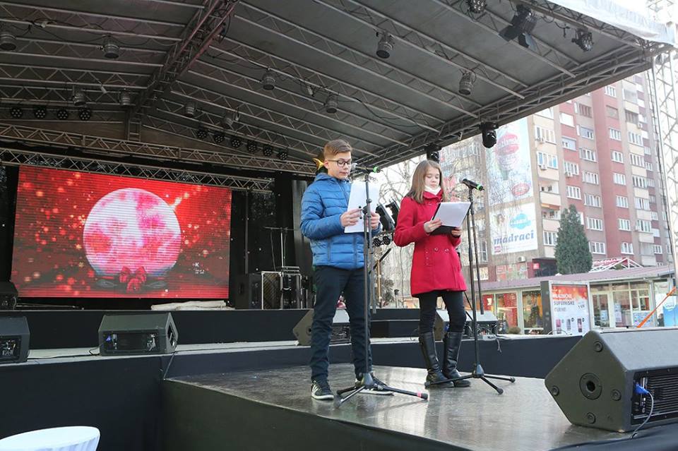 roditelja, a djecu su zabavljali glumci Dječije, omladinske i lutkarske scene Bosanskog narodnog pozorišta, djeca iz svih zeničkih vrtića JU Predškolski odgoj i obrazovanje, plesni klubovi Stars i Iskre, članovi dječijeg ansambla folklorne grupe Bosniafolk, a pred sami kraj programa na Trg je došao i Djed Mraz sa punim vrećama paketića, poklona i slatkiša.