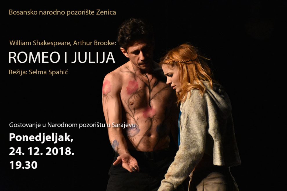 FOTO: Zenički „Romeo i Julija“ na sceni Narodnog pozorišta u Sarajevu – Nakon uspješne premijerne izvedbe i ljetne festivalske turneje, predstava ,,Romeo i Julija” Bosanskog narodnog pozorište Zenica će u ponedjeljak, 24. decembra, biti izvedena i na Velikoj sceni Narodnog pozorišta u Sarajevu. Sarajevsko gostovanje predstave „Romeo i Julija” je njeno prvo bosanskohercegovačko gostovanje, a na dosadašnje gostujuće izvedbe ove predstave, brojna festivalska publika u Budvi i Baru tokom ljetnih mjeseci prethodne sezone nije ostala ravnodušna.