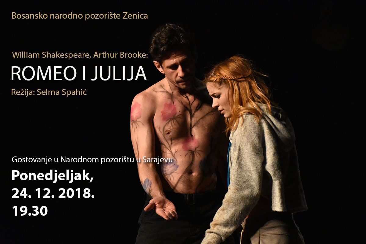 FOTO: Zenički „Romeo i Julija“ na sceni Narodnog pozorišta u Sarajevu – Nakon uspješne premijerne izvedbe i ljetne festivalske turneje, predstava ,,Romeo i Julija” Bosanskog narodnog pozorište Zenica će u ponedjeljak, 24. decembra, biti izvedena i na Velikoj sceni Narodnog pozorišta u Sarajevu. Sarajevsko gostovanje predstave „Romeo i Julija” je njeno prvo bosanskohercegovačko gostovanje, a na dosadašnje gostujuće izvedbe ove predstave, brojna festivalska publika u Budvi i Baru tokom ljetnih mjeseci prethodne sezone nije ostala ravnodušna.