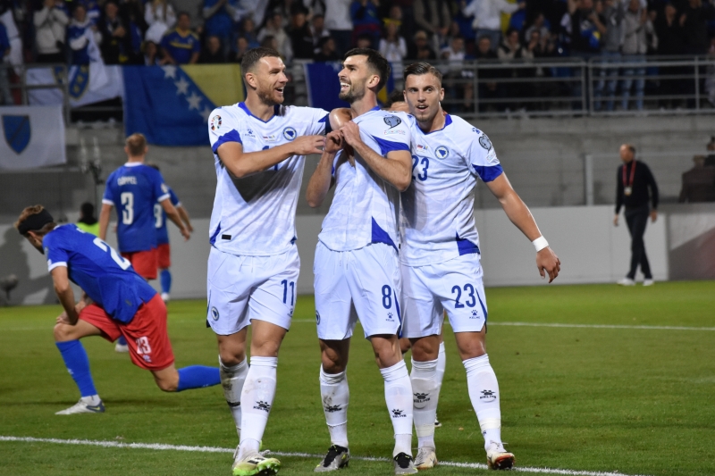 Fudbalska reprezentacija Bosne i Hercegovine savladala je u Vaduzu selekciju Lihtenštajna sa 2:0 u meču sedmog kola kvalifikacija za Evropsko prvenstvo.