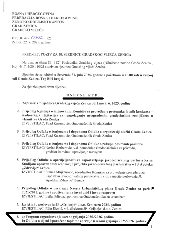 Za sve one koji ipak i dalje ne vjeruju, u nastavku zvanični dokumenti JP “Grijanje” Zenica koji će se naći na dnevnom redu naredne sjednice Gradskog vijeća: