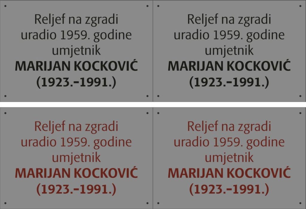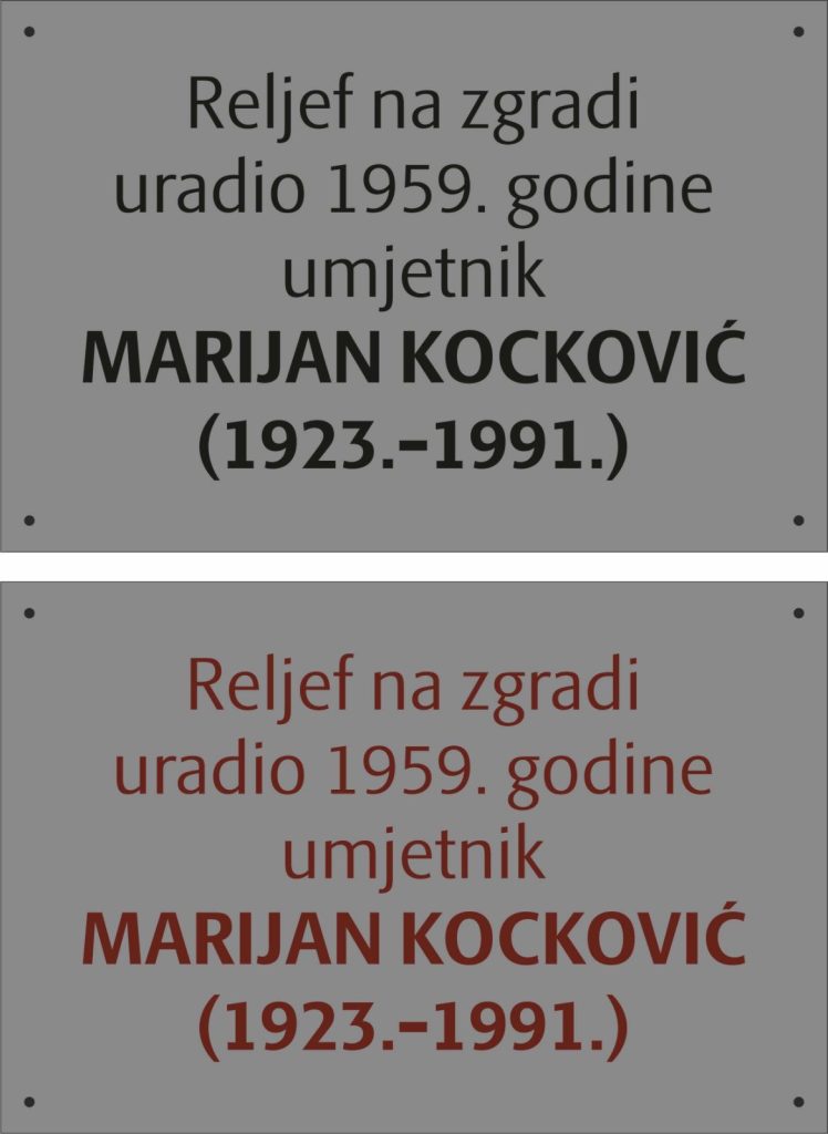 Jedna od prvih aktivnosti u okviru projekta jeste postavljanje ploče s imenom autora reljefa – akademskog kipara Marijana Kockovića – na zgradi FZ MIO/PIO KAS Zenica i ZZO ZDK, poznatoj kao zgrada „Socijalnog“. Reljef je nastao 1959. godine, a iako je dio vizuelnog identiteta grada više od šest decenija, do sada nije bio adekvatno obilježen.