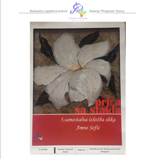 Galerija “Preporod” Zenica: Izložba slika autorice Amne Sofić – Galerija „Preporod“ Zenica u okviru planiranih aktivnosti orgnizuje 5. samostalnu Izložbu slika, autorice Amne Sofić. Izložba nosi naslov „Priča sa stakla“, jer svaki od radova, koji su naslikani na staklu, ima svoju priču.