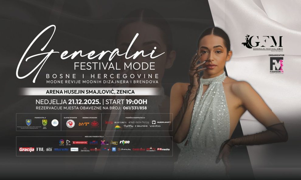 Arena „Husein Smajlović“ ugostit će Generalni Festival Mode Bosne i Hercegovine (GFM), modni događaj koji okuplja najznačajnija domaća i regionalna dizajnerska imena, afirmišući modu kao važan segment savremene kulture, kreativne industrije i međunarodne vidljivosti Bosne i Hercegovine.