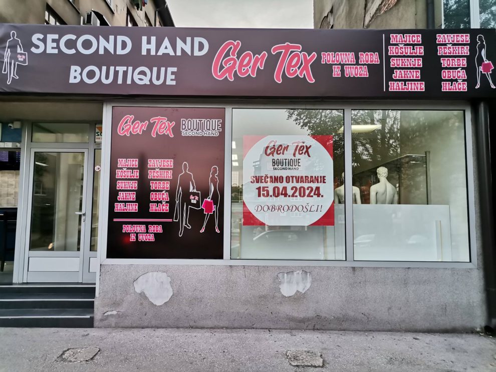 Second hand butik u trgovini ima robu isključivo porijeklom iz Njemačke, a asortiman se obnavlja na dnevnoj osnovi, rečeno nam je u Ger-Texu.