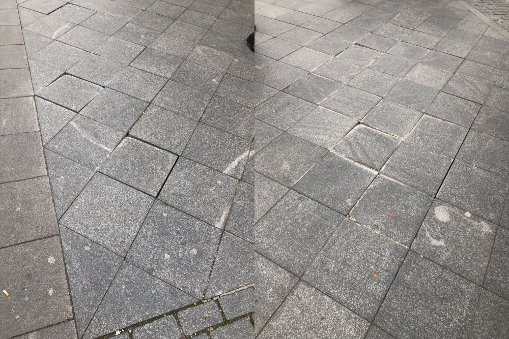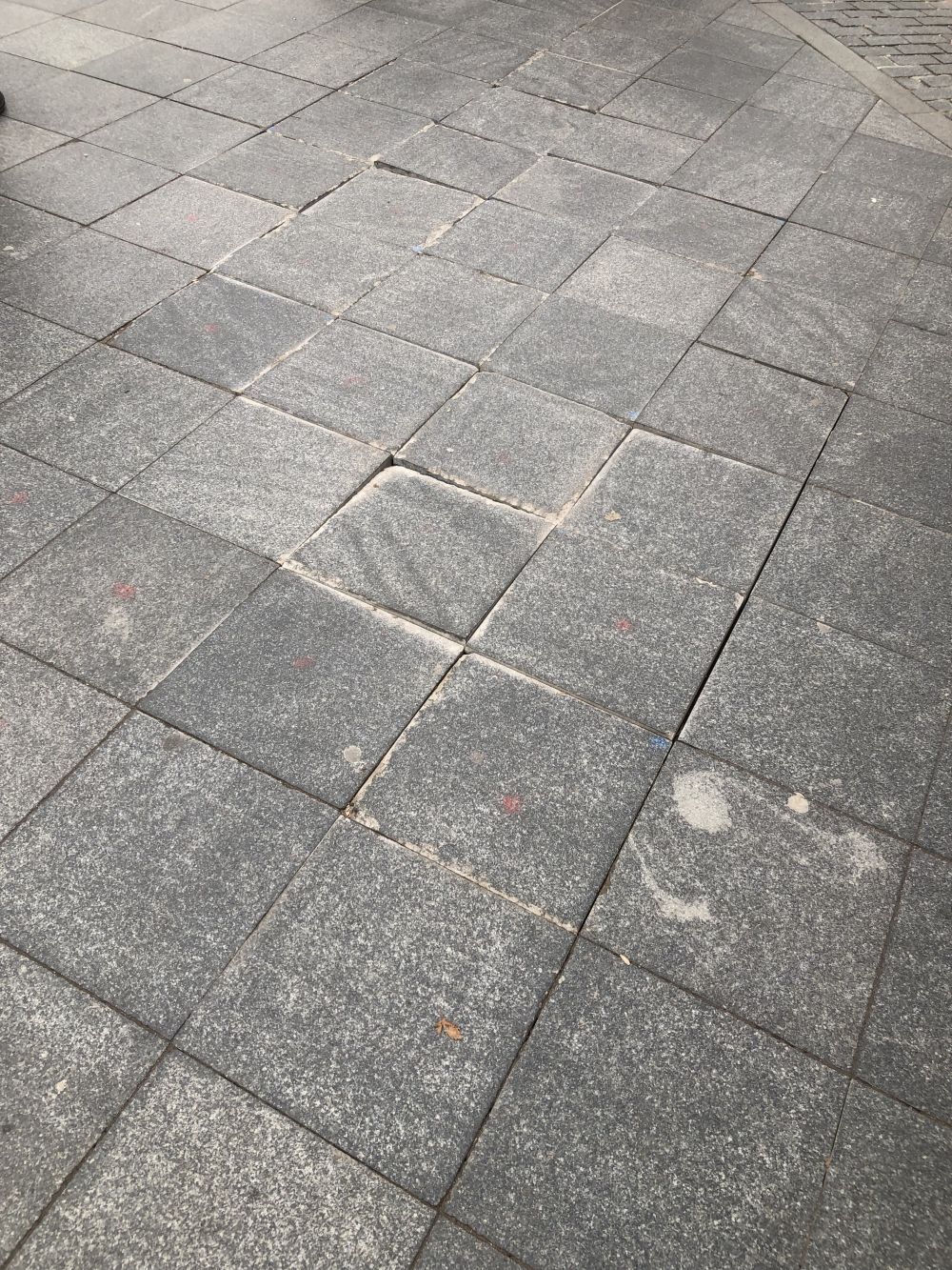 Jedini ispravan način da se ploče trajno postave jeste komplet vađenje granitnih ploča i postavljanje istih mokrim postupkom u estrihu koji je spravljen na ispravan način ( kvalitetne frakcije, propisana količina cementa i vode). Nakom postavljanja i ravnjanja estriha isti politi cementnim mlijekom ili još bolje vodootpornim i za vanjsku upotrebu lepilom i onda postvljati granitne ploče. Granitne ploče postavljene na ovaj način vječno će služiti svojoj funkciji.