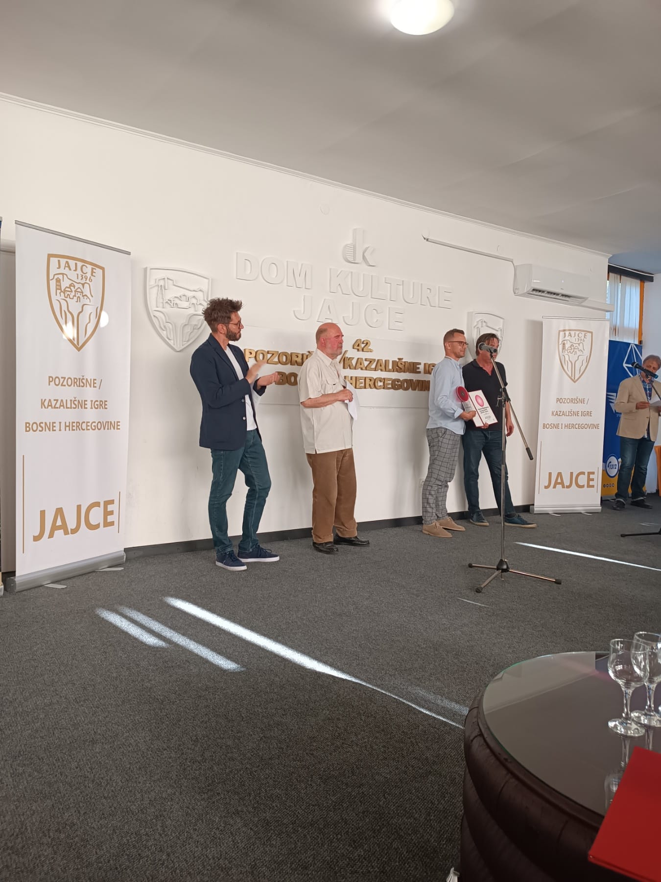 Predstava „Tri dana“ prema tekstu Romana Sikore, u režiji Tanje Miletić-Oručević i u produkciji Bosanskog narodnog pozorišta Zenica je prethodne sedmice bila izvedena u Domu kulture Jajce u sklopu 42. pozorišnih/kazališnih igara BiH u Jajcu. Uručenje nagrada ovog Festivala bilo je upriličeno 8. jula u Jajcu. Stručni žiri u sastavu: Mladen Bičanić, Mirza Skenderagić i Marko Misirača dodijelio je Nagradu za najbolje glumačko ostvarenje glumcu Nusmiru Muharemoviću za ulogu Gospodina B. u predstavi „Tri dana“. Zajedno sa ovom, predstava „Tri dana“ dobila je ukupno sedam nagrada u 2023. godini.