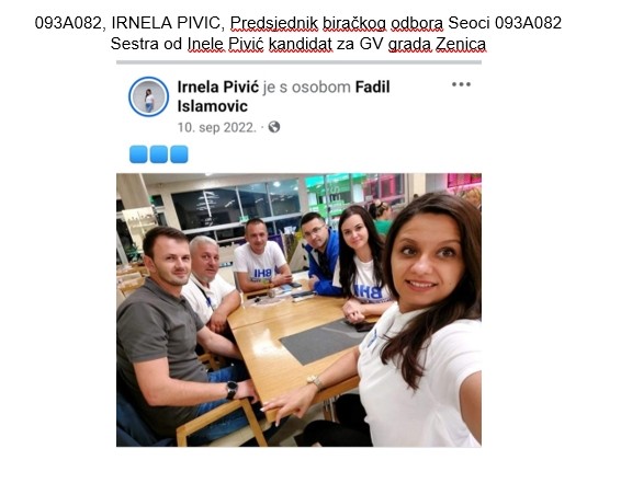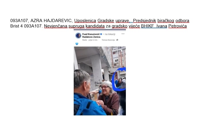 Napominje se da je na osnovu uvida posmatrača SDA, članica GIK-a Alma Ščetić, inače uposlenica Gradske uprave, radila na unosu podataka za predsjednike i zamjenike, te po svom ličnom nahođenju i po naređenju šefa Gradske uprave, Gradonačelnika Grada Zenice, vršila raspored predsjednika i zamjenika predsjednika biračkih odbora.