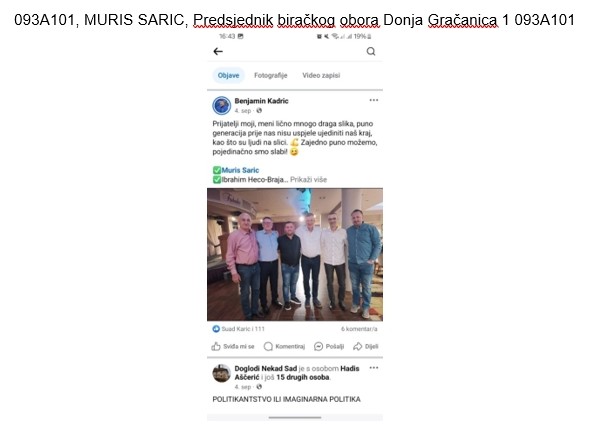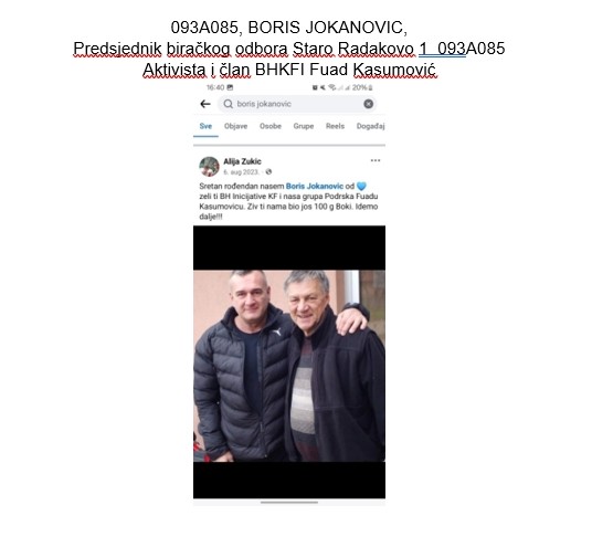 Uz prigovor su priložene fotografije imenovanih sa predizbornih skupova BHI KF te drugih aktivnosti ove političke stranke, koje nesporno potvrđuju da su politički pristrasni.