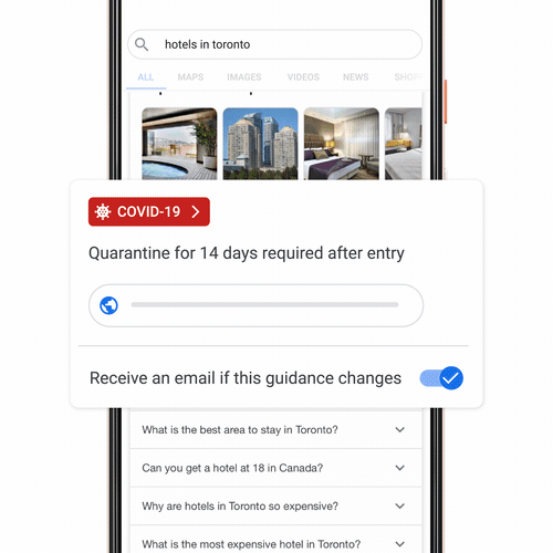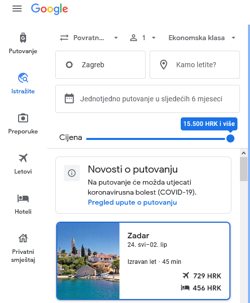 U slučaju pretraživanja letova, hotela ili pak pojedinih aktivnosti koje se mogu povezati s turizmom, Google će, uz rezultate pretraživanja, automatski prikazati i sva upozorenja ili ograničenja vezana uz mjere protiv Covida-19.