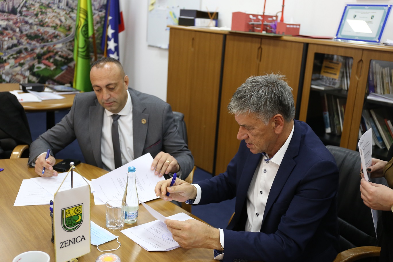 Pored potpisivanja Ugovora, gradonačelnik Kasumović i zamjenik direktora Federalne uprave policije Korman razmijenili su informacije o trenutnim aktivnostima i projektima Grada Zenica i Federalne uprave policije.
