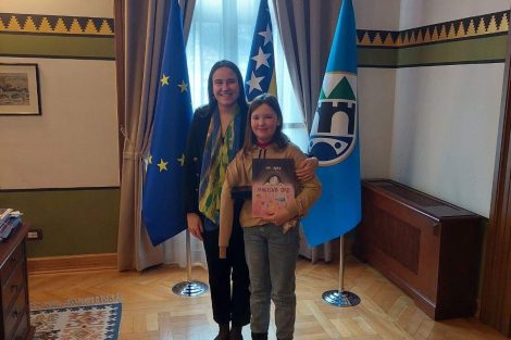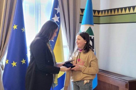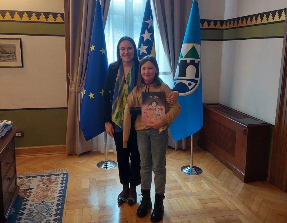 Gradonačelnica Sarajeva Benjamina Karić ugostila je Adnu Aličehajić, hrabru djevojčicu iz Zenice koja se, uprkos rođenju bez ruke, ističe svojim sportskim uspjehom.