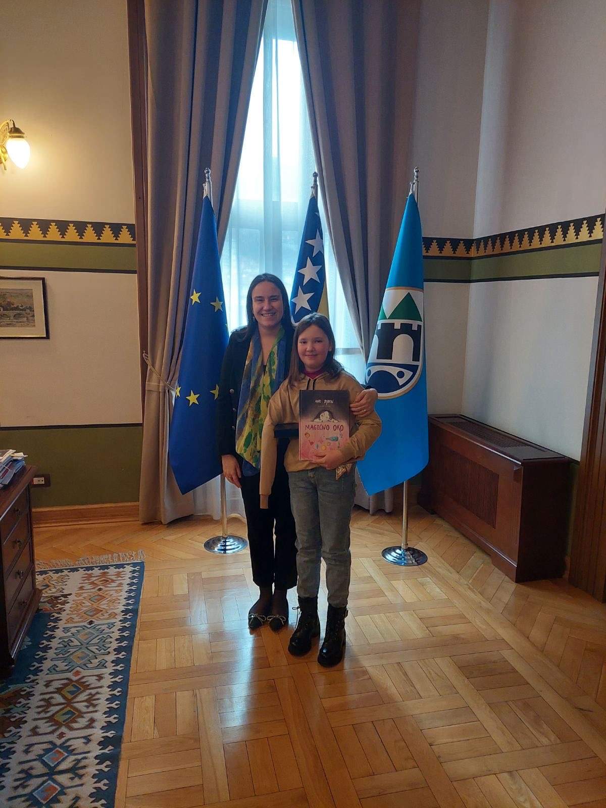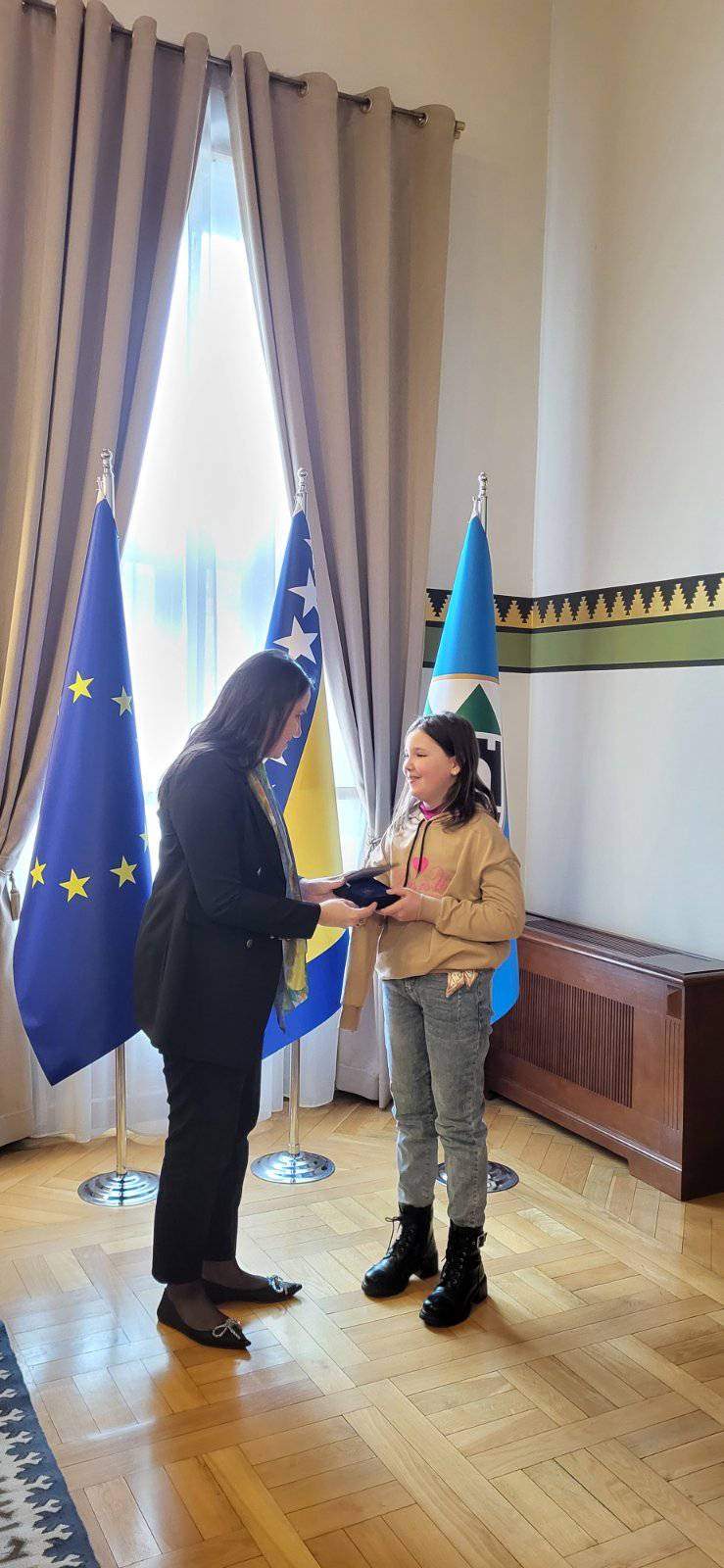 Gradonačelnica Sarajeva Benjamina Karić ugostila je Adnu Aličehajić, hrabru djevojčicu iz Zenice koja se, uprkos rođenju bez ruke, ističe svojim sportskim uspjehom.