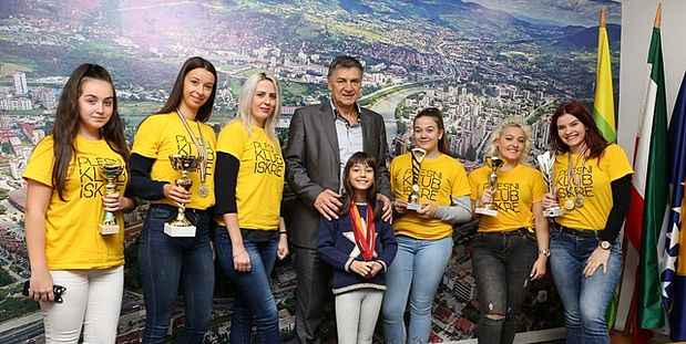 Gradonačelnik Kasumović upriličio prijem za članice Plesnog kluba “Iskre” – Gradonačelnik grada Zenica, gosp. Fuad Kasumović danas je u svom kabinetu upriličio prijem za sedam članica Plesnog kluba “Iskre” iz Zenice na čelu s predsjednicom i trenericom kluba Belmom Sarvan.