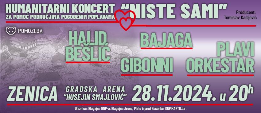 Na ovom jedinstvenom događaju učestvovat će velike regionalne muzičke zvijezde – Halid Bešlić, Gibonni, „Plavi orkestar“ i Bajaga. Kompletan prihod od prikupljenih sredstava bit će namijenjena za žrtve katastrofalnih poplava koja su pogodile Bosnu i Hercegovinu.