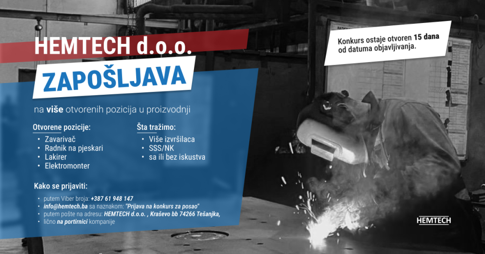 Povećavaju proizvodne kapacitete i raspisuju konkurs za zapošljavanje radnika na više pozicija.