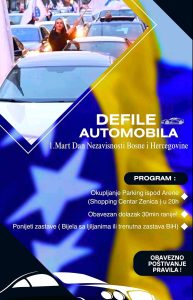 I u Zenici najavljen defile automobila povodom Dana nezavisnosti BiH- Povodom Dana nezavisnosti Bosne i Hercegovine u nekoliko gradova u BiH planiran je defile automobila kako bi se obilježio ovaj značajan datum za našu domovinu Bosnu i Hercegovinu.