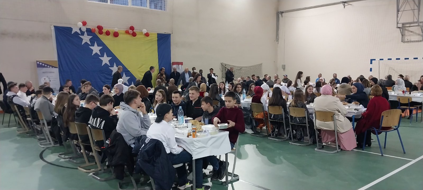 Nakon obilaska škole upriličen je iftar kojem je prisustvovalo oko 125 postača, među kojima su bili učenici, nastavnici, predstavnici javnih institucija i mještani Željeznog Polja.