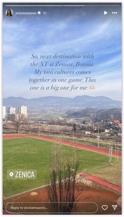 “Sljedeća destinacija sa reprezentacijom je Zenica, Bosna. Moje dvije kulture spajaju se u jednoj utakmici. Ovo je veliki momenat za mene”, napisala je Mušović na Instagramu.