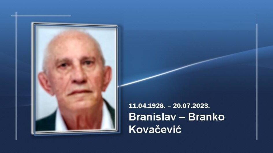 Tužnim srcem javljamo da je 20.jula 2023.godine u dalekoj Norveškoj preminuo novinar i publicista Branislav-Branko Kovačević iz Zenice koji je bio u plejadi mnogih znamenitih žurnalista zeničkog podneblja. Rođen je 11.04. 1928. godine u Nevesinju, Bosna i Hercegovina. Bio je dugogodišnji profesionalni dopisnik Radio Sarajeva , a iz Zenice je radio i za list Politiku iz Beograda. Objavljivao je i članke i reportaže u zeničkom regionalnom listu „Naša riječ“ i u mnogim lokalnim listovima, a obavljao je i funkciju glavnog i odgovornog urednika lista „Vatrostalac“ čija se distribucija obavljala od Jesenica do Skoplja (u ex Jugoslaviji) gdje je zenička radna organizacija „Vatrostalna“ imala svoja stalna gradilišta.