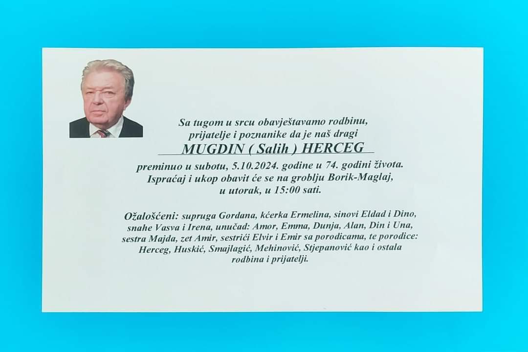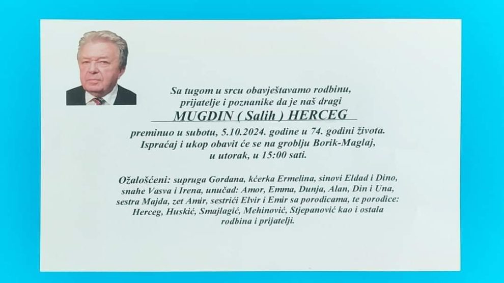 Posljednji guverner Zeničko-dobojskog kantona Mugdin Herceg iz Maglaja preminuo je u 73. godini,