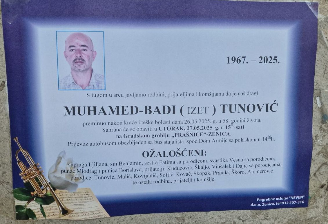 IN MEMORIAM: Muhamed Badi Tunović- poznat termin sahrane- Nakon teške i kratke bolesti u Zenici je u 58. godini života preminuo dugogodišnji reporter Oslobođenja Muhamed Tunović.