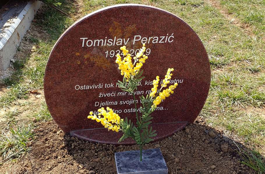 Epitaf je napisao ugledni književnik Emir Sokolović. Zbog pandemije virusa korona, a poštujući odluku Kriznog štaba ZE DO Kantona da se izbjegavaju okupljanja grupa ljudi danas smo odgodili dolazak prijatelja na groblje i to će mo organizovati kada se stvore uslovi. U mnogim kultnim kafeima i objektima gdje se okupljaju ljudi iz grada mnogo nam nedostaje Tomislav Perazić.