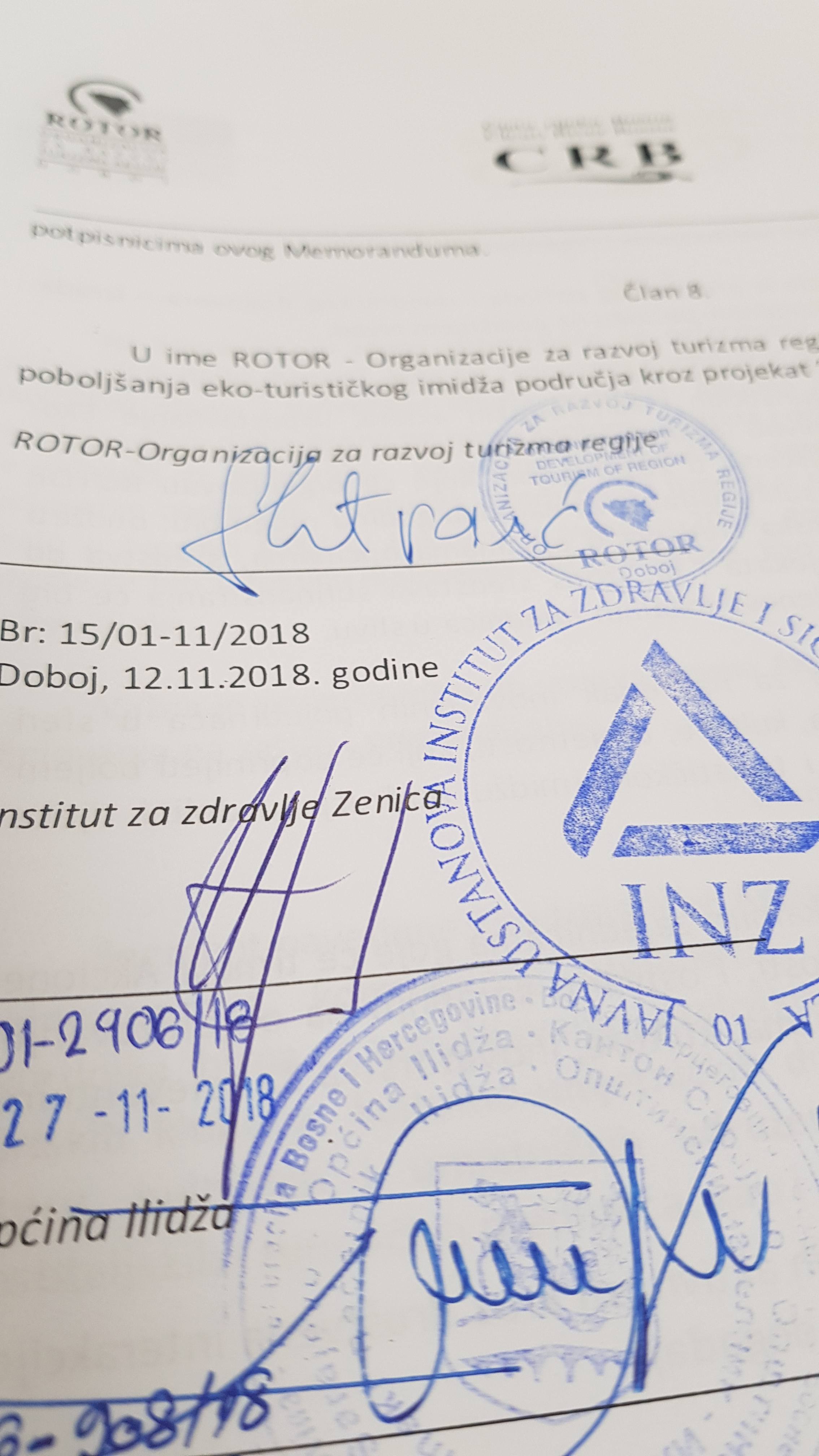 INZ i “Rotor” – Potpisan Memorandum o nastavku projekta “Čista rijeka Bosna” u 2019. godini – Siniša Mitrović, direktor “Rotora”, Organizacije za razvoj turizma regije Doboj i dr. Senad Huseinagić, direktor Instituta za zdravlje i sigurnost hrane Zenica (INZ) potpisali su danas (utorak) u Zenici Memorandum o saradnji i partnerskim odnosima za nastavak realizacije projekta “Čista rijeka Bosna” u 2019. godini.