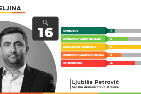 Dva ispunjena obećanja odnose se na obezbjeđivanje besplatnih udžbenike za učenike od petog do devetog razreda, te na ukidanje duplih funkcija i smanjenje administracije. Neispunjeno je obećanje o uvođenju neradne nedjelje, a treba se prisjetiti i obećanja o Banjoj Luci kao gradu bez podjela nakon nacionalističke i homofobne retorike Draška Stanivukovića.
