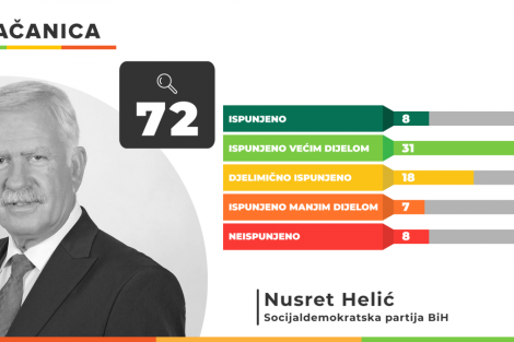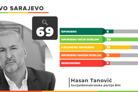 Od 69 obećanja načelnika Općine Novo Sarajevo Hasana Tanovića u potpunosti ih je ispunjeno 6, a većim dijelom 30. Djelimično je ispunjeno 19 obećanja, dok ih je 11 ispunjeno manjim dijelom.
