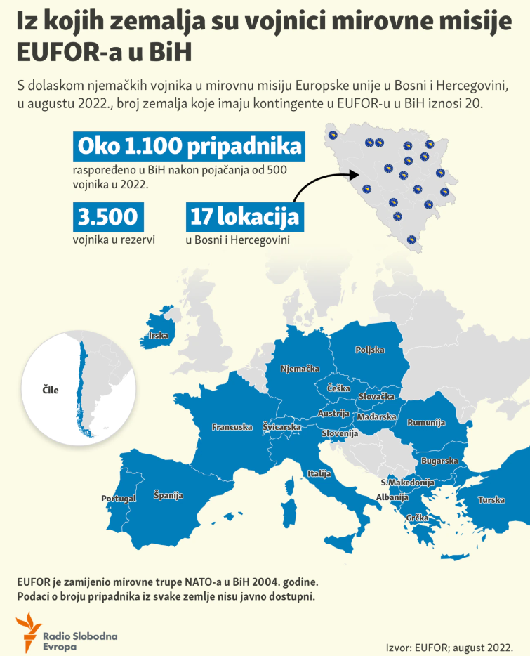Iz kojih zemalja su vojnici misije EUFOR-a u BiH?
