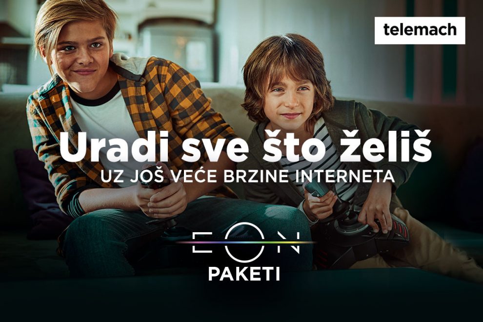 U okviru svoje nove ponude, kompanija Telemach svojim postojećim i novim korisnicima omogućuje internet brzine od 100 mb/s u EON Light paketu, pa do čak 300 mb/s u paketu EON Premium.