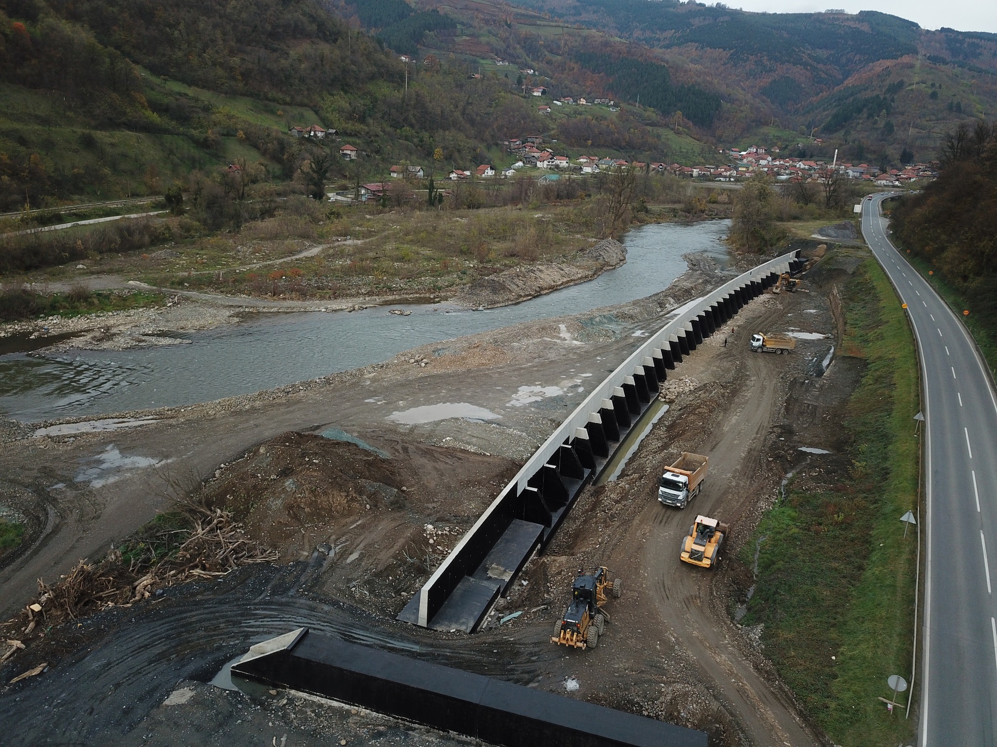 U sklopu izgradnje dionice Nemila – Vranduk izvodi se i regulacija rijeke Bosne kroz Nemilu, gdje su radovi na izgradnji pravougaonog betonskog korita (regulaciji korita) Nemilske rijeke završeni, a na dijelu trase izmještene M-17 započeta je ugradnja slivnika i priključnih cjevovoda. Do sada je iskopano oko 77.000 m3 zemljanog materijala, a ugrađeno oko 138.000 m3 nasipa. Na gradilištu zavisno od radova koji se obavljaju angažirano je oko 119 radnika.