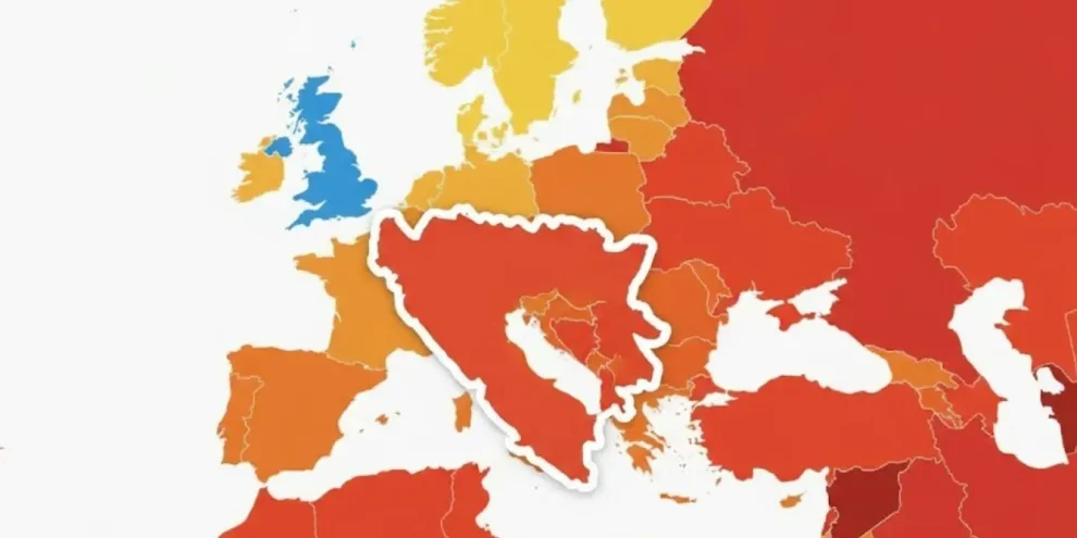 Poređenja radi, globalni prosjek iznosi 42, što potvrđuje da je BiH značajno ispod svjetskog standarda. Najlošije rangirana zemlja u regionu je Srbija, koja se nalazi na 116. mjestu sa indeksom 33.