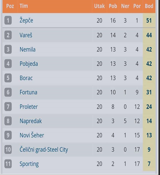 Konačna tabela kantonalne lige ZDK, sezona 2021/2022 (izvor sa NK Nemila):