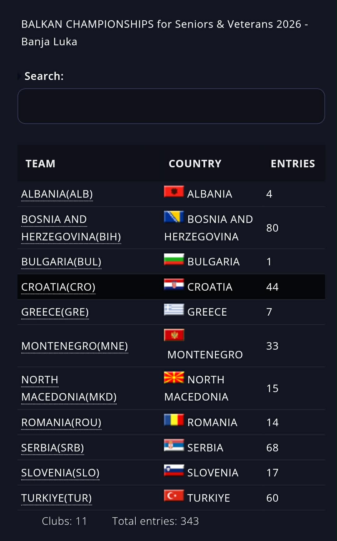 Na Balkanskom prvenstvu za seniore i veterane, održanom u organizaciji Svjetske karate federacije (WKF), nastupila su 343 takmičara iz 11 država Balkana – Albanije, Bosne i Hercegovine, Bugarske, Hrvatske, Grčke, Crne Gore, Sjeverne Makedonije, Rumunije, Srbije, Slovenije i Turske.
