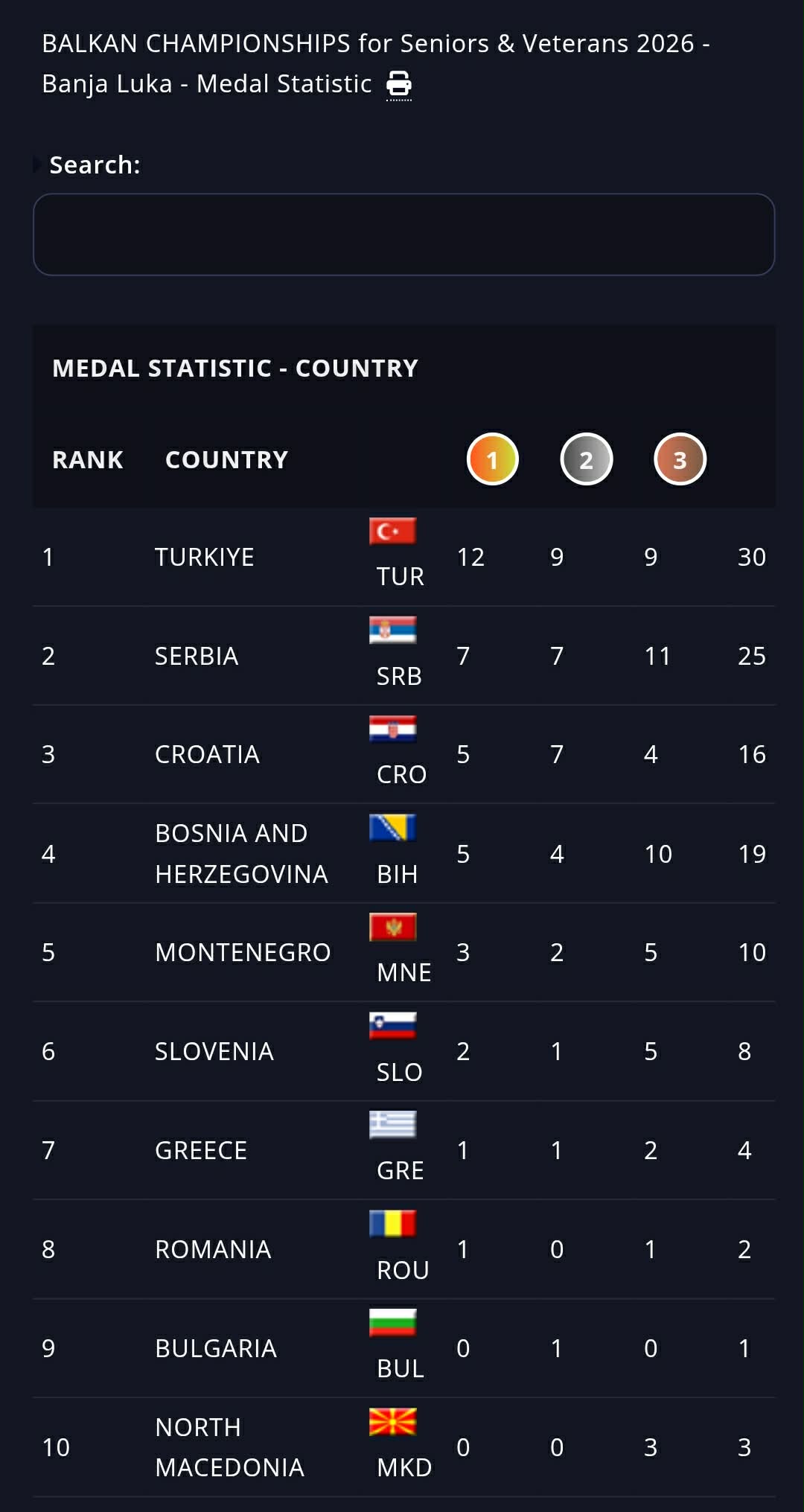 Reprezentacija Bosne i Hercegovine u ukupnom plasmanu zauzela je visoko četvrto mjesto sa osvojenih 19 medalja – pet zlatnih, četiri srebrene i deset bronzanih.