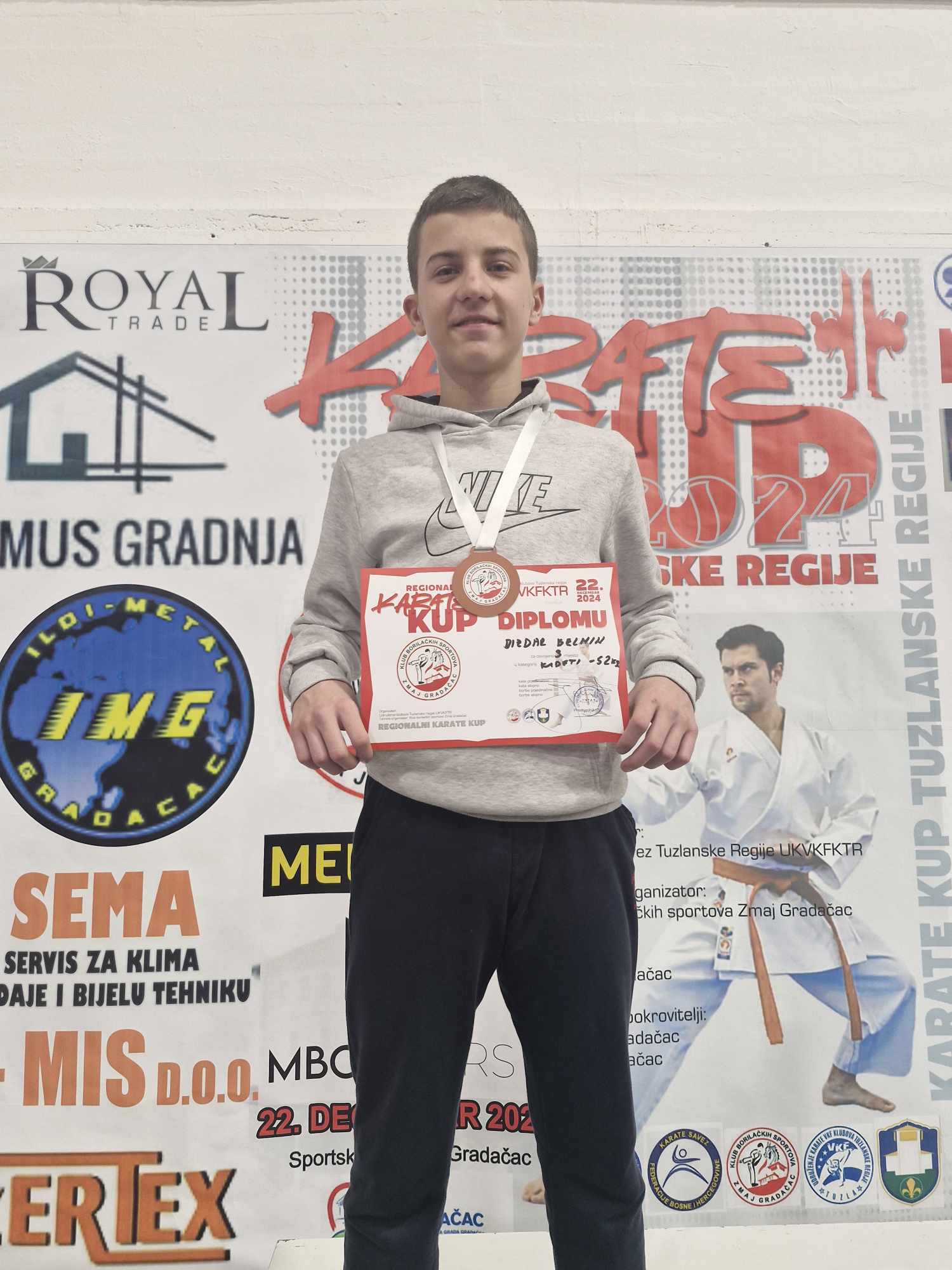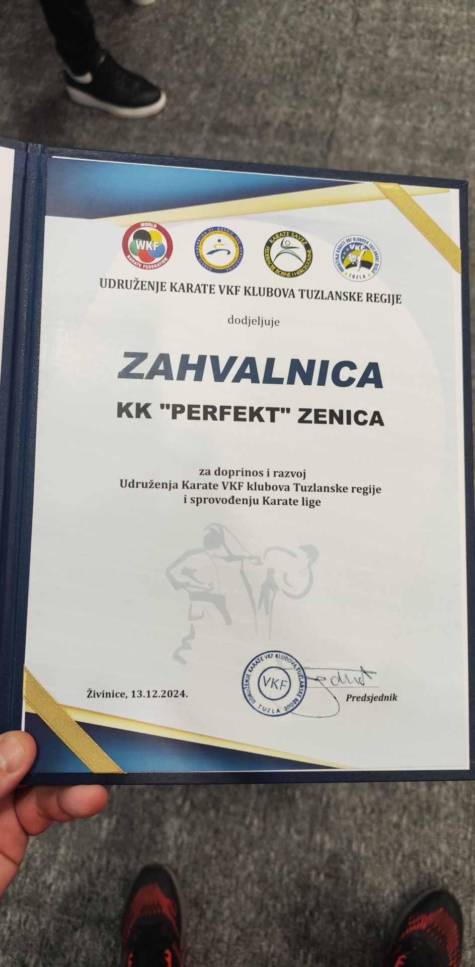 Organizator karate kupa je svečano uručio ZAHVALNICU glavnom treneru kluba Nermin Gagi Bosnjak za doprinos i razvoj Udruženja karate VKF klubova Tuzlanske regije i sprovođenju karate liga.