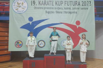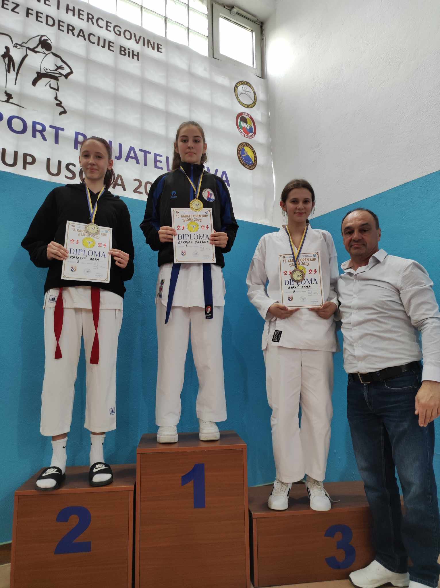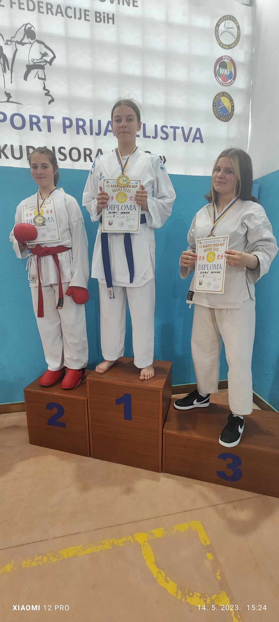 – Sumeja Macanović prvo mjesto i zlatna medalja u katama djevojčice 10 godina žuti, drugo mjesto i srebrena medalja u katama 11+ godina žuti