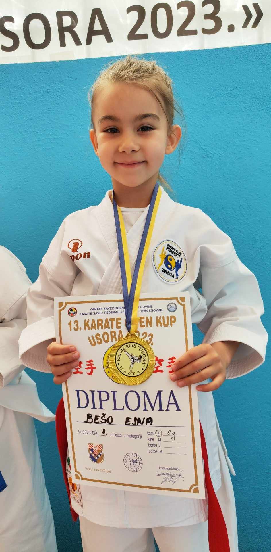 Naša takmičarka Ejna Bešo je najuspješnija takmičarka našeg kluba iz Usore osvojivši dvije zlatne medalje u katama i srebrenu medalju u borbama, te je time potvrdila svoju psiho-fizičku formu za predstojeće Balkansko prvenstvo.
