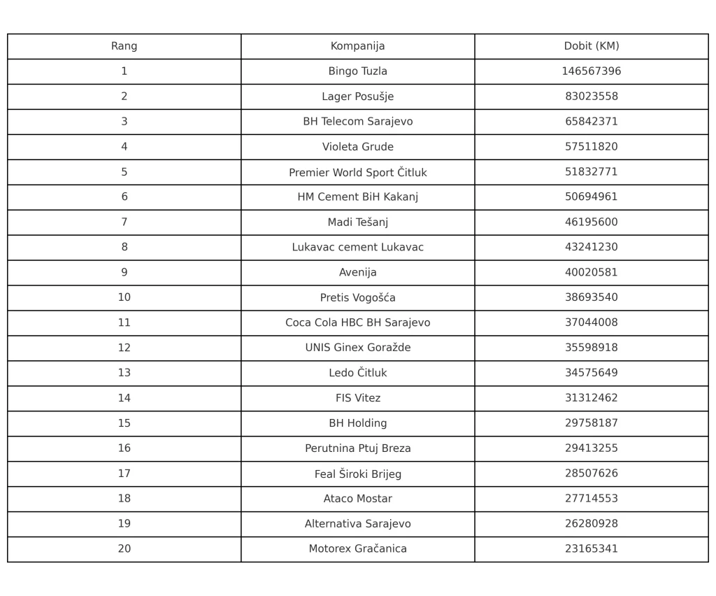 Kladionica ušla u Top pet najuspješnijih kompanija u FBiH po ostvarenoj dobiti- Jedna kladionica ušla je u Top 5 najuspješnijih kompanija u Federaciji BiH, mjereno prema neto dobiti, odnosno čistoj zaradi u 2024. godini.