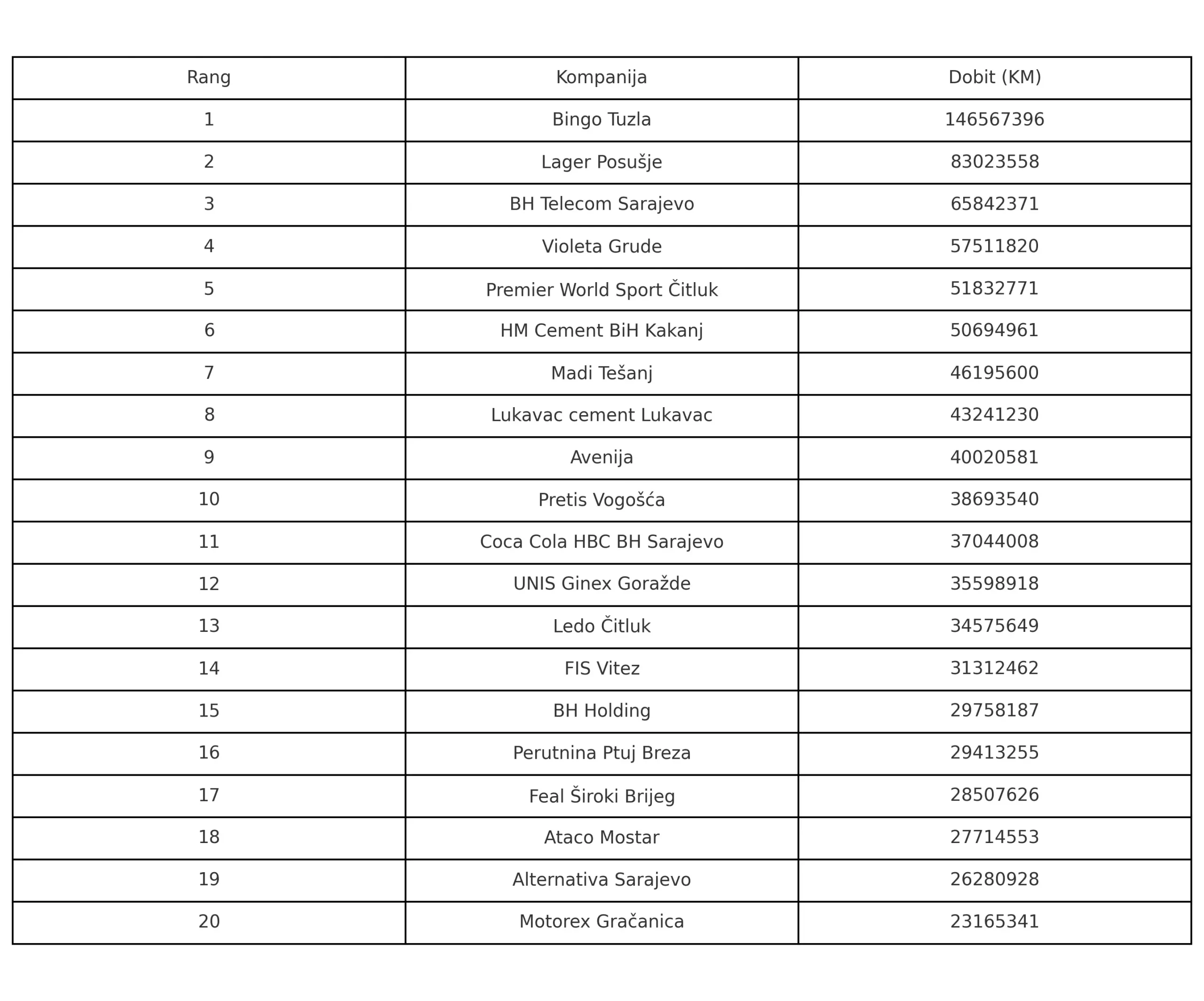 Riječ je o kompaniji Premier World Sport Čitluk koja je u prošloj godini imala dobit od 51,8 miliona maraka, piše BiznisInfo.ba. Po tome se popela na 5. mjesto najuspješnijih, odnosno najprofitabilnijih firmi u Federaciji.