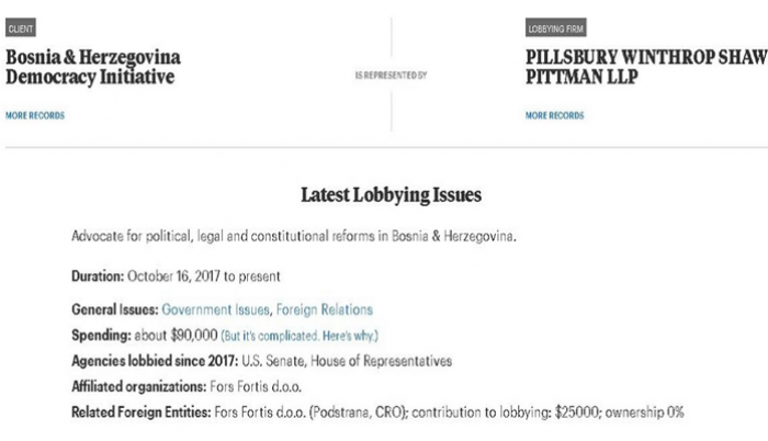 U cilju kontaktiranja američkog Senata te pokušaju ostvarivanja uticaja na odluke koje donosi, angažovana je potpuno nepoznata nevladina organizacija “Bosnia & Herzegovina Democracy Initiative” (BHDI), koja je potom angažovala lobističku kuću Pillsbury Winthrop Shaw Pittman LLP sa sjedištem u Washingtonu, a cijela akcija odvija se pod pokroviteljstvom kladioničarskog lobija iz susjedne Hrvatske.