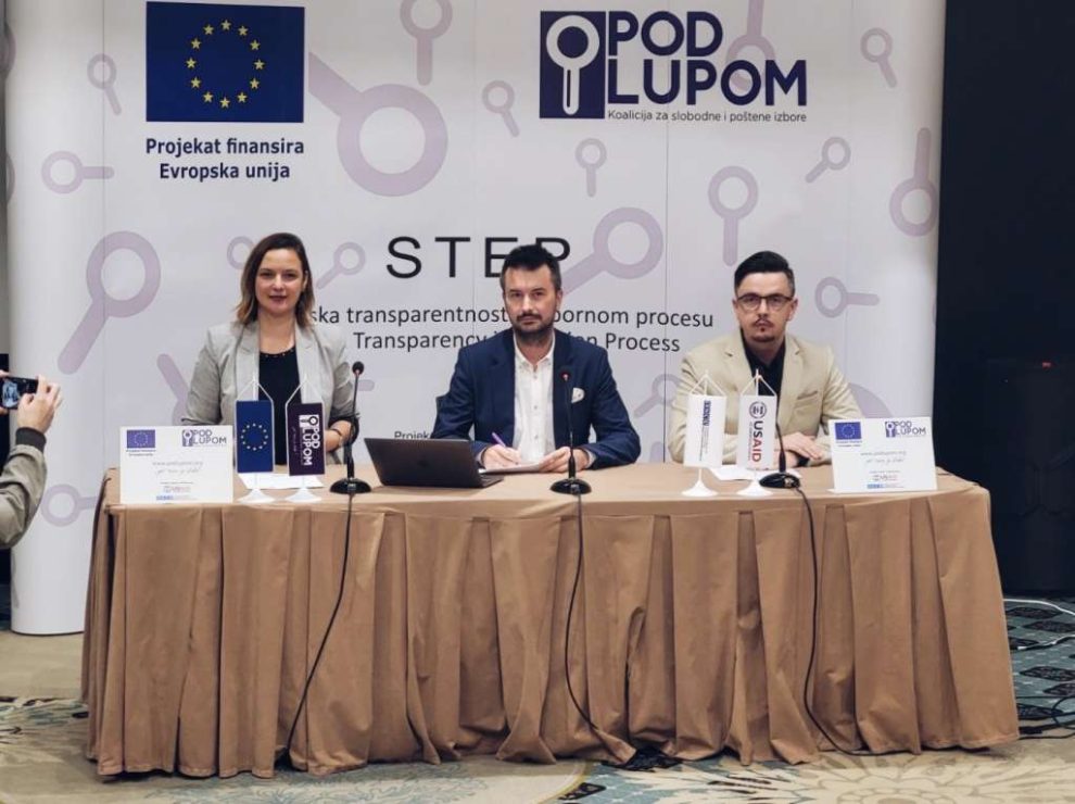 Građani su Koaliciji „Pod lupom“ uputili 90 prijava od kojih se 33 odnose na imena umrlih osoba na biračkom spisku, 14 na pritiske na birače u blizini biračkog mjesta, deset na nepoštivanje nove procedure o stavljanju otiska štambilja i potpisivanja glasačkih listića, po četiri prijave na kupovinu glasova, kršenje izborne šutnje i glasanje uime drugih itd.