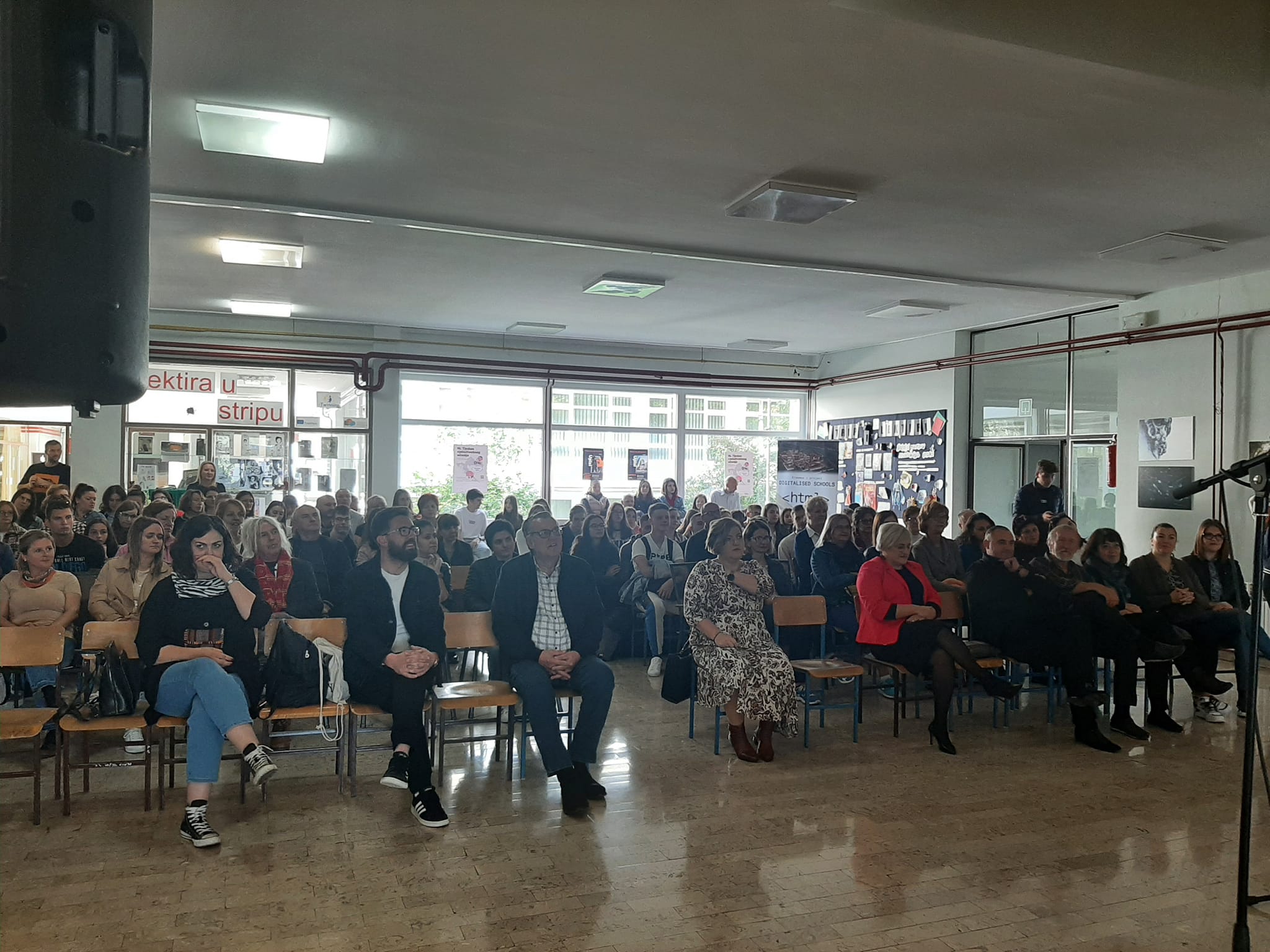 Prvi dio susreta održan je u predvorju Ruđerice, kako ju od milja zovu njeni učenici i djelatnici, gdje je dobrodošlicu gostima iz Zenice poželjela ravnateljica Nada Pitinac, naglasivši kako ovaj projekt, osim financijske potpore objema školama, ima i dublje značenje – “zajedništvo naših škola te podršku Hrvatima u BiH i dijaspori”.