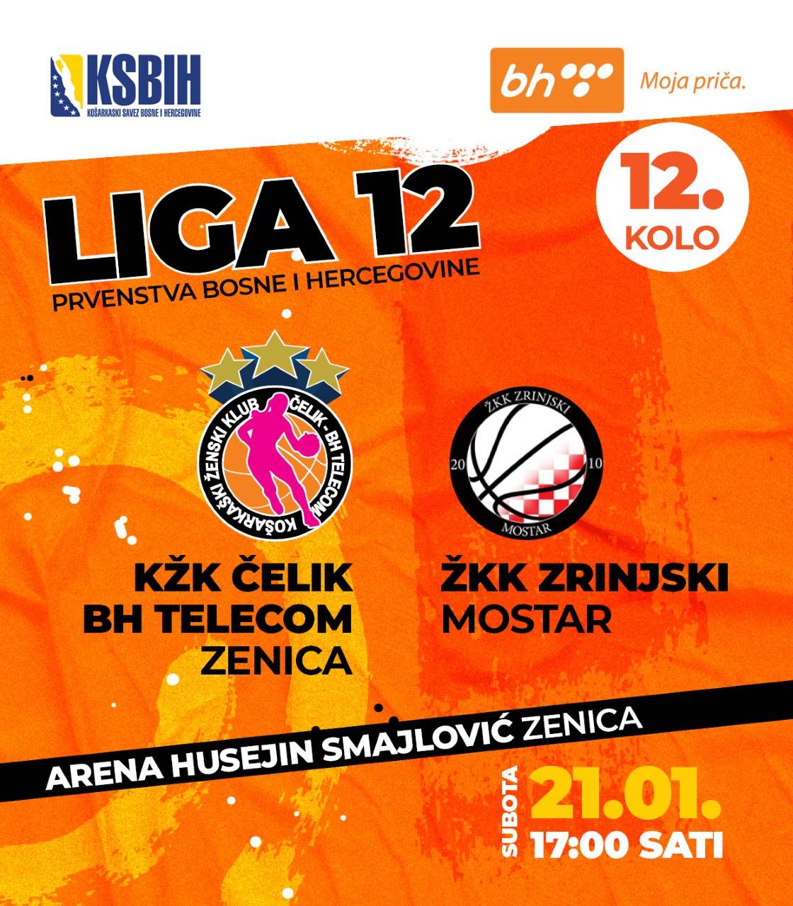 Košarkašice KŽK Čelik BH Telekom u 12.kolu su domaćini ekipi ŽKK „Zrinjski 2010“ iz Mostara, inače debitantu u najvišem rangu, a utakmica je na rasporedu ove subote, 21.1. od 17 sati u gradskoj Areni „Husejin Smajlović“.