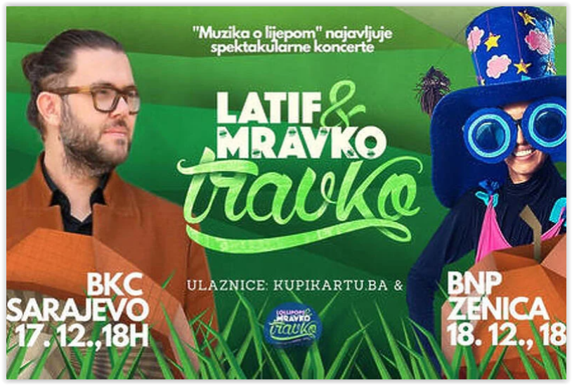 “Svaki mrav ima dar”, “Vjeverica”, “Hvala mama”, samo su neke od pjesmica Latifa i Mravka Travka uz koje odrasta već nekoliko generacija djece, a u poznatim melodijama mala publika moći će uživati i ove subote, 17. decembra, u Sarajevu, te u nedjelju 18. decembra, u Zenici.