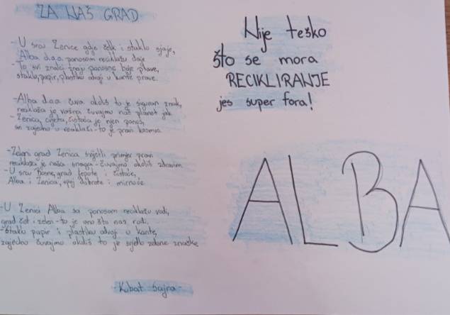 Iz Uprave škole su se zahvalili kompaniji ALBA Zenica za aktivno učešće i pomoć u realizaciji projekta.