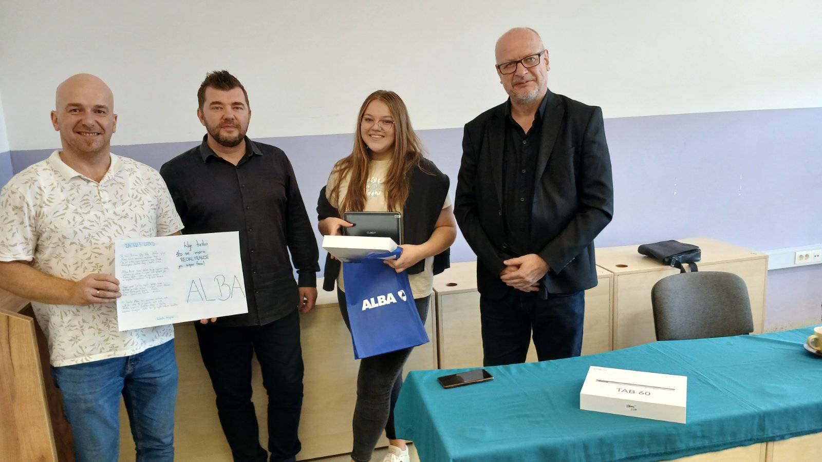 Nagradu su danas Sajri uručili predstavnici firme ALBA Zenica uz prisustvo direktora škole Mustafe Krge i pomoćnice direktora Hasne Alihodžić.
